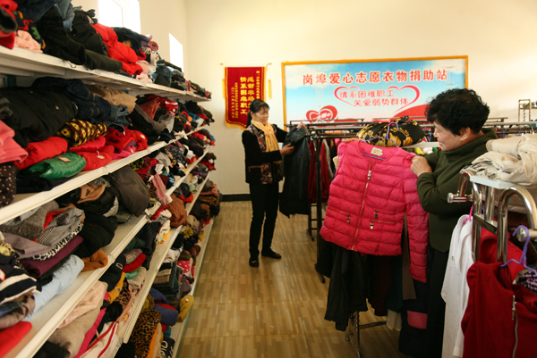 近日,筆者走進(jìn)“崗埠愛心志愿衣物捐助站”看到。屋里一排排衣架上整整齊齊掛滿了各類衣服,男的女的、大人小孩四季衣服都有,墻上掛著來自贛榆、東海、灌云和農(nóng)場的贈送的多面錦旗。“雖然我家有很多困難,但黨委李書記時(shí)常會去關(guān)心,為我家送錢送物,排憂解難,解決了不少難事!今天我選了6件衣服,自己的、老伴的,還有孫子孫女的”正在挑選衣服的錢大西高興地說。