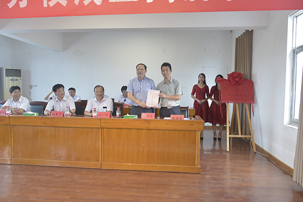 張大冬和白馬湖學校總校長工楊國東代表合作雙方簽定聯合辦學協議,姚春華、咸勇為淮安市新安小學白馬湖分校揭牌。